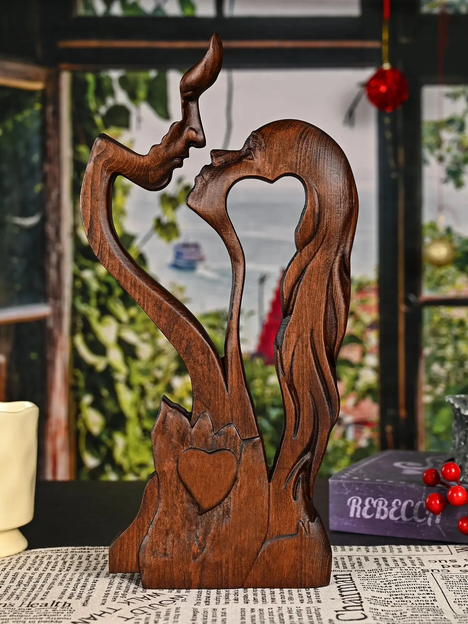 Cross wood carving,Couple portrait sculpture Love Cross,carved tabletop,Wedding Family s day gift,