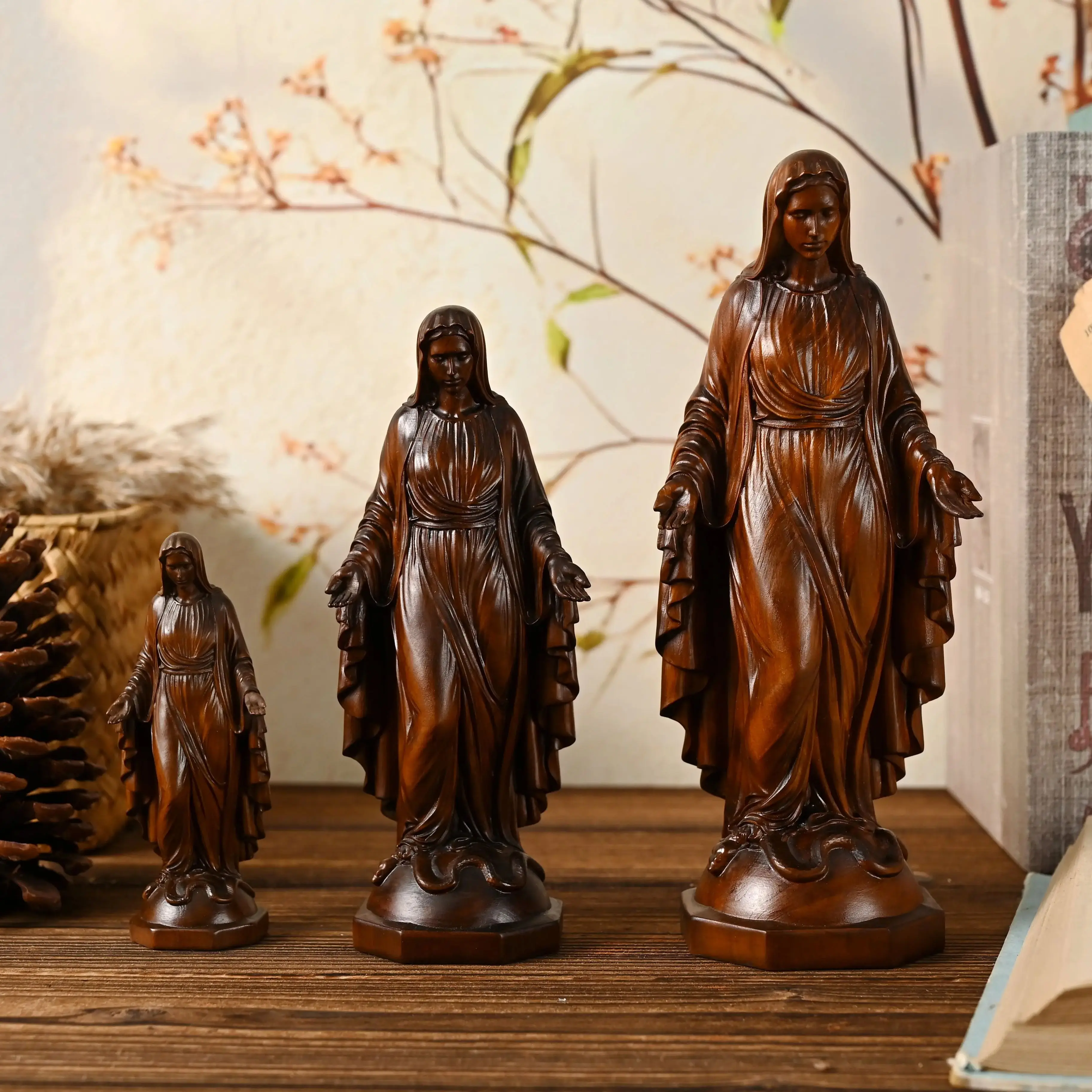 Exquisite Facial Features: The face of the Virgin Mary in the statue is serene and kind, with delicate carvings fully presenting her tenderness and compassion. Her downcast eyes seem to contain love and care for all things in the world. A gentle glance can soothe people's hearts. The slightly upturned corners of her mouth seem to convey silent blessings, allowing everyone who gazes at her to feel the warmth and solace of the soul.