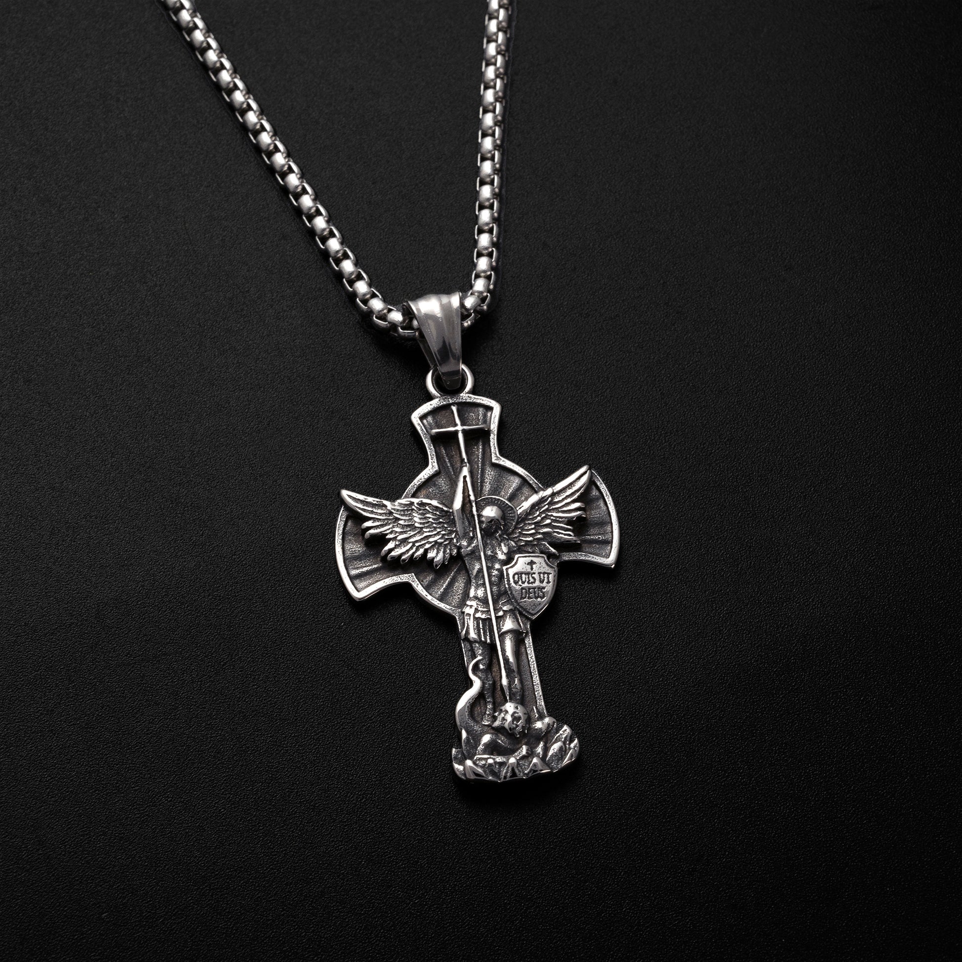 “Wherever you are, wearing this St. Michael's Titanium Cross Necklace is like having the guardianship of St. Michael, turning inner turmoil into courage and unknown challenges into motivation. The engraved icon is the beacon of faith that illuminates every journey of your life.”