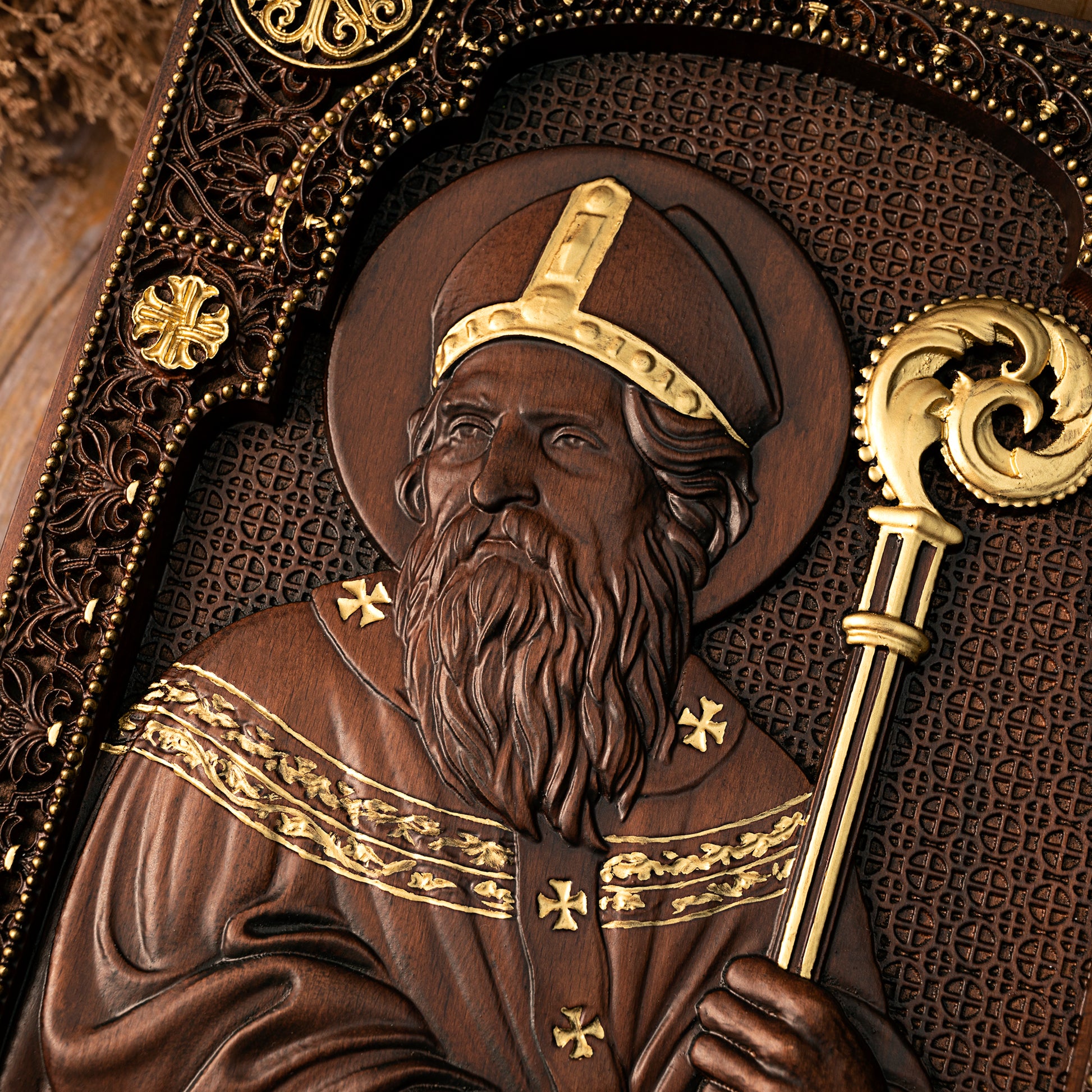 Saint Patrick Wood Carved Icon Religious Gift Wall Hanging Art Work,family wall decoration