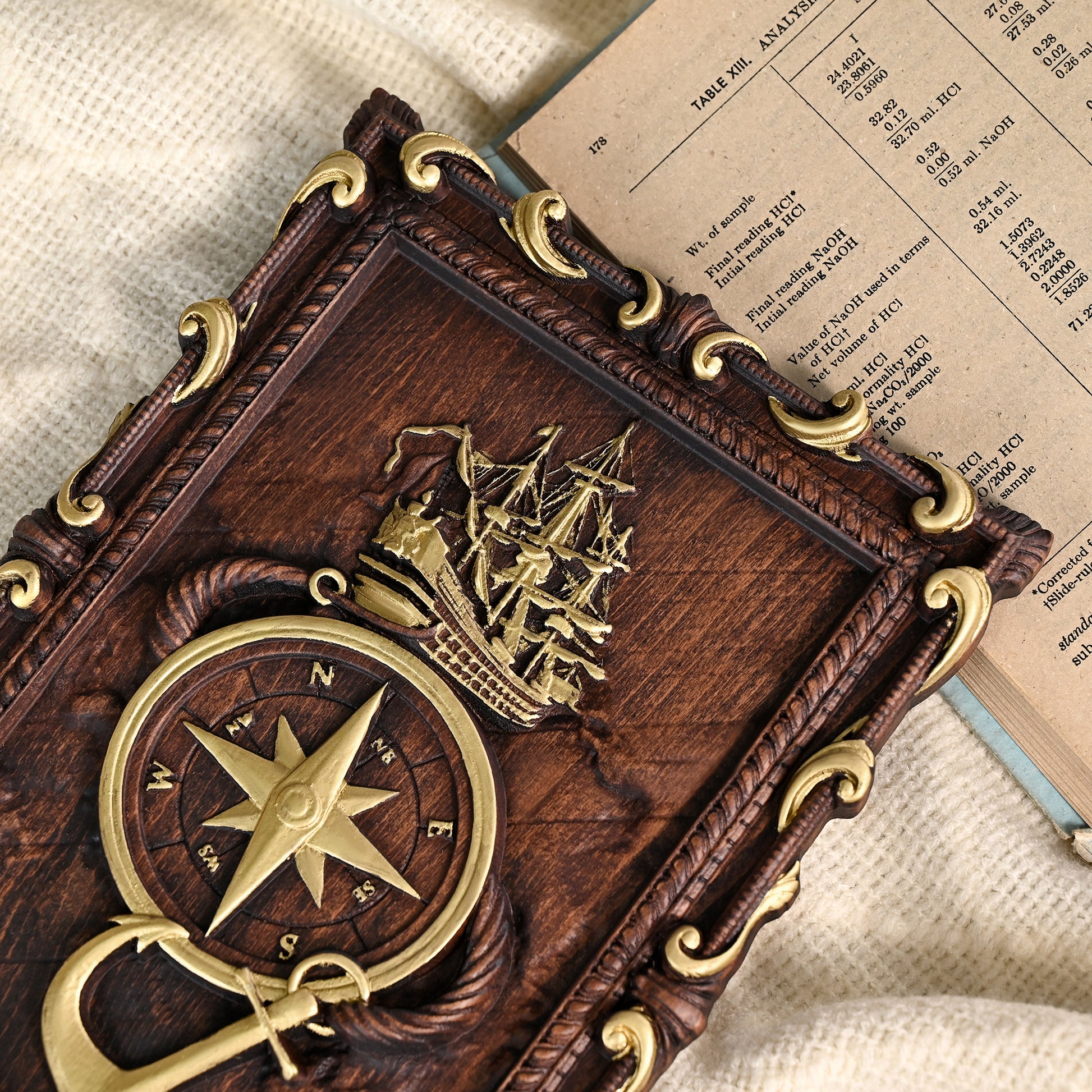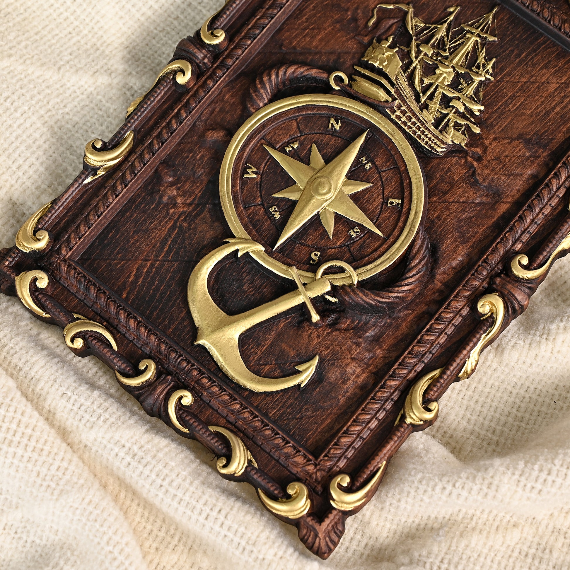 Navigator wood sculpture, Anchor Travel around the world wooden board