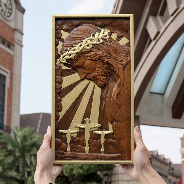 Wood carving religious,Plaque commemorating Good Friday,remembering the meaning of Jesus' crucifixion
