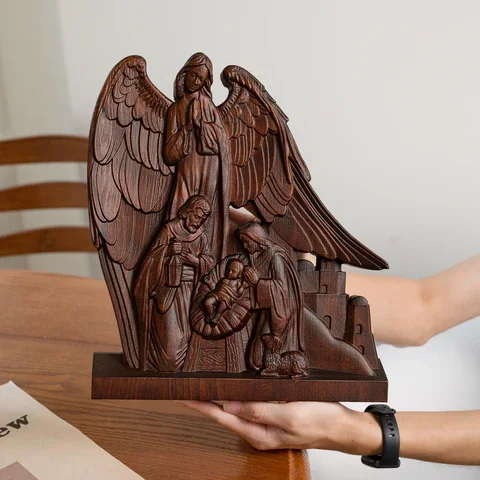 🎁🎄Experience this beautifully detailed Holy Family With Guardian Angel Statue, it crafted from natural beech wood and brilliantly portrays Guardian Angel, The Blessed Virgin Mary, and St. Joseph admiring Little Jesus. This makes a breathtaking gift-giving to explain our belief and also an idea for home decoration for this Christmas!
